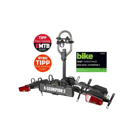 Nosič BUZZ E-SCORPION 2 získal 3 ocenenia "TIP REDAKCIE" v testoch nemeckých časopisov BIKE, MY BIKE a E-MTB magazine za najlepší cyklonosič v pomere cena/výkon !