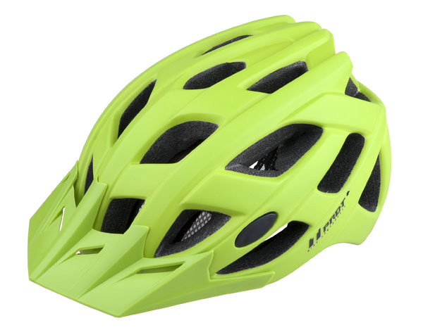 Športová prilba s odnímateľným štítkom sieťkou proti hmyzu. Konštrukcia In-Mold, nastaveni pomocou kolieska, hmotnosť 270 g, 25 vetracích otvorov, odrazové prvky