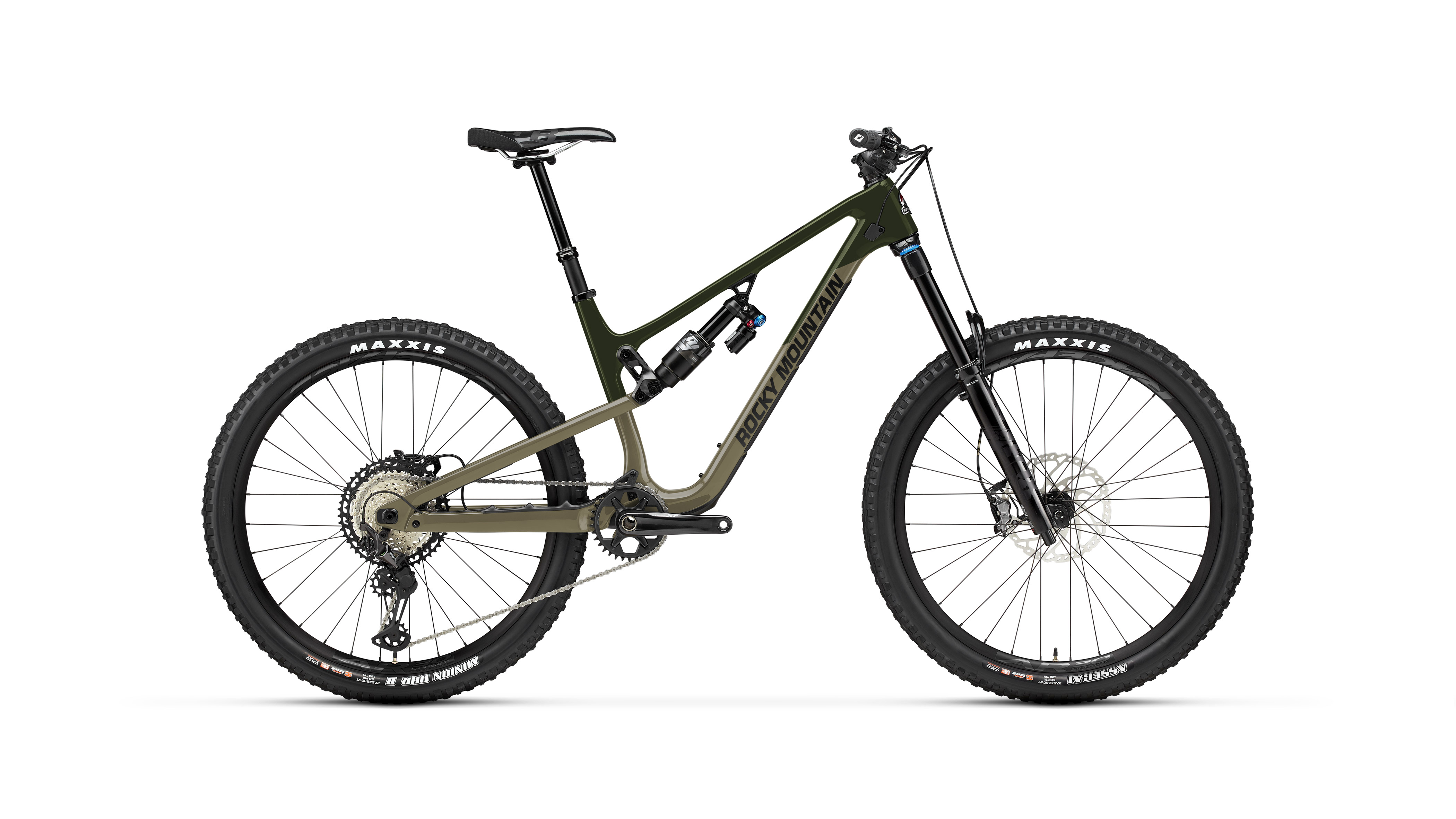 Pláště: Přední: Maxxis Assegai 2.5 WT 3C MaxxGrip EXO+ Tubeless Ready // Zadní: Maxxis Minion DHR II 2.4 WT 3C MaxxTerra EXO+ Tubeless Ready