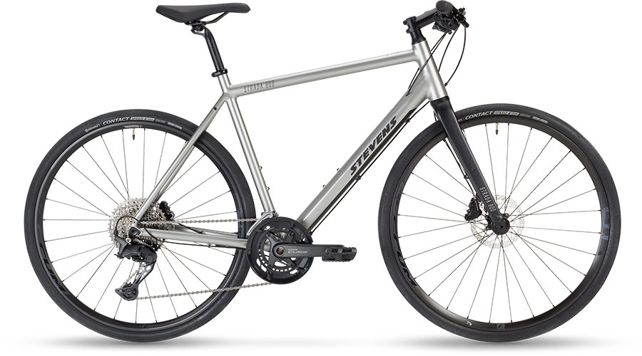 ento hliníkový bicykel je skutočne ľahký, v neposlednom rade vďaka hliníkovej vidlici STEVENS S-Lite. Prevody Shimano CUES U6000 Linkglide s 2x10 rýchlosťami umožňujú bleskurýchle a presné radenie prevodových stupňov. A jeho matný povrch vo farbe „Frozen Silver“ klame konkurenciu: jednoducho jazdí skvele.
