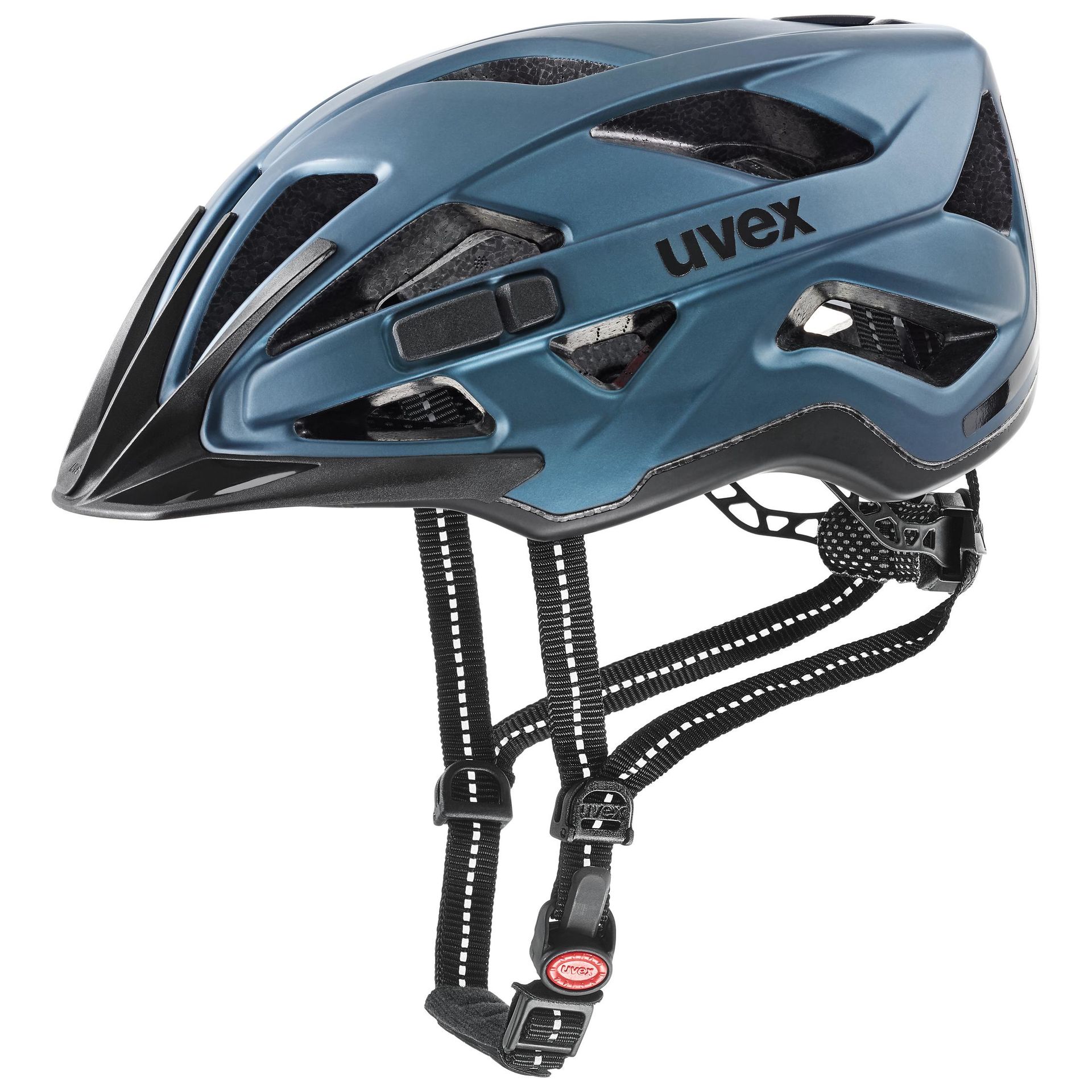 Cyklistická prilba uvex city active s integrovaným svetielkom uvex plug-in LED 4191150600 a reflexnými prvkami na popruhoch je ideálnou voľbou pre bicyklovanie, alebo kolobežkovanie v meste, alebo cestnej premávke. Vďaka double inmould technológii škrupiny je prilba veľmi ľahká a 19 vetracích otvorov zabezpečuje dokonalé odvetranie hlavy. V predných otvoroch je umiestnená bezpečnostná sieťka proti hmyzu. Nastaviteľný IAS 3D 3.0 fit systém umožňuje nastavenie veľkosti prilby do výšky aj do šírky aby prilba pevne s pohodlne držala na hlave. Odnímateľné výstelky sú antialergické a je možné ich vyprať. Váha prilby je od 280 g.